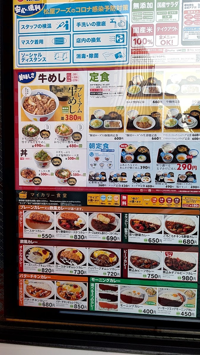 At Matsuya Kawasaki, the menu feels carefully balanced between comfort, value, and variety, making it easy to understand why this location remains consistently busy. Classic rice bowls anchor the lineup, with options like 牛 めし キムチ 生 玉子 セット and ねぎたま牛めし delivering the familiar savory-sweet beef profile enhanced by punchy kimchi or soft egg richness, while heartier bowls such as キムカル丼 and 十勝豚丼 add depth through bolder seasoning and pork-forward flavors. Curry lovers are especially well served: from the smooth and approachable モーニングカレー プレーン to more indulgent plates like バターチキンカレー, マッサマンカレー, and 欧風オムカツカレー, the curry selection ranges from mild and comforting to rich and aromatic. The addition of eggs, omelets, or protein upgrades-seen in プレーンカレー ハンバーグトッピング and バターチキンオムレツカレー-keeps repeat visits from feeling repetitive. For diners seeking set meals, options such as カルビ 焼定食, ハンバーグ肉厚豚焼肉定食大盛, and the generously portioned お肉どっさりグルメセット emphasize value and satiety, while シャリアピンソースハンバーグ adds a more Western-style comfort note. Premium touches appear in items like うな丼 and カットステーキのハッシュドビーフ, which elevate the menu beyond fast dining without straying from its practical pricing philosophy. Even lighter-balanced plates such as ゴロゴロ野菜ロースカツカレー サラダ show thoughtful composition, combining vegetables with satisfying fried cuts. Breakfast is not an afterthought either, with ソーセージダブルエッグ朝食 offering a filling start that still aligns with the restaurant’s overall identity. The menu as a whole feels cohesive, affordable, and reliable, reflecting a clear understanding of everyday dining needs while still offering enough variety to keep regular customers engaged.